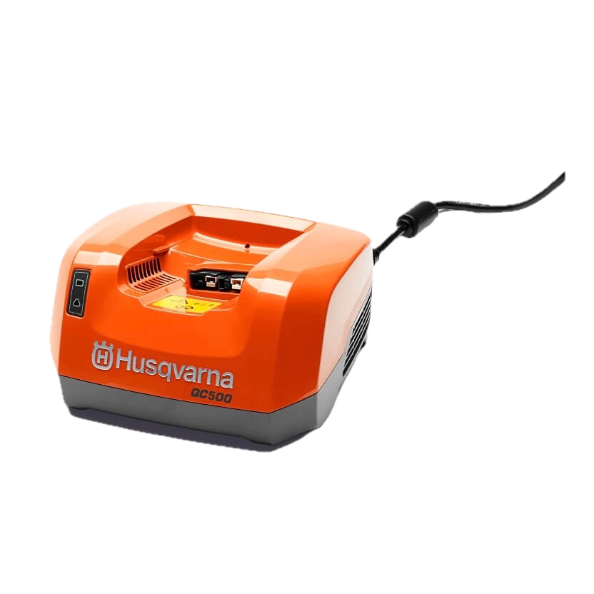 Le chargeur d‘accu Husqvarna QC500 permet une charge rapide des sacs à dos accu ainsi que des accus BLi300.