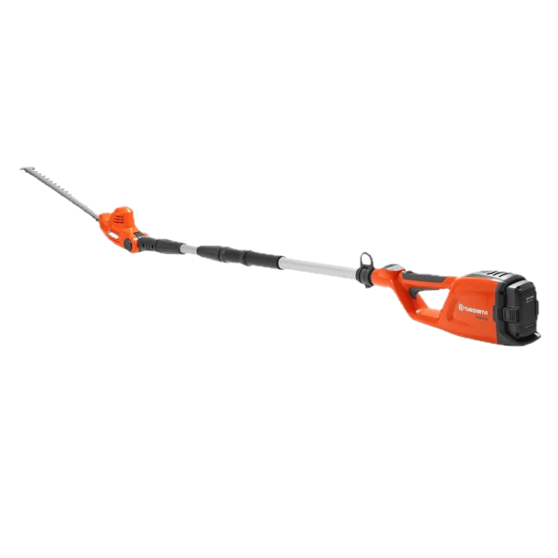 Taille-haie sur perche à accu Husqvarna 120iTK4-H avec des perfor- mances comparables à un appareil à essence, mais sans émissions directes et d’un fonctionnement silencieux.